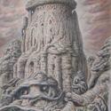 Pincel. Lápiz. Tinta sepia ligeramente coloreada